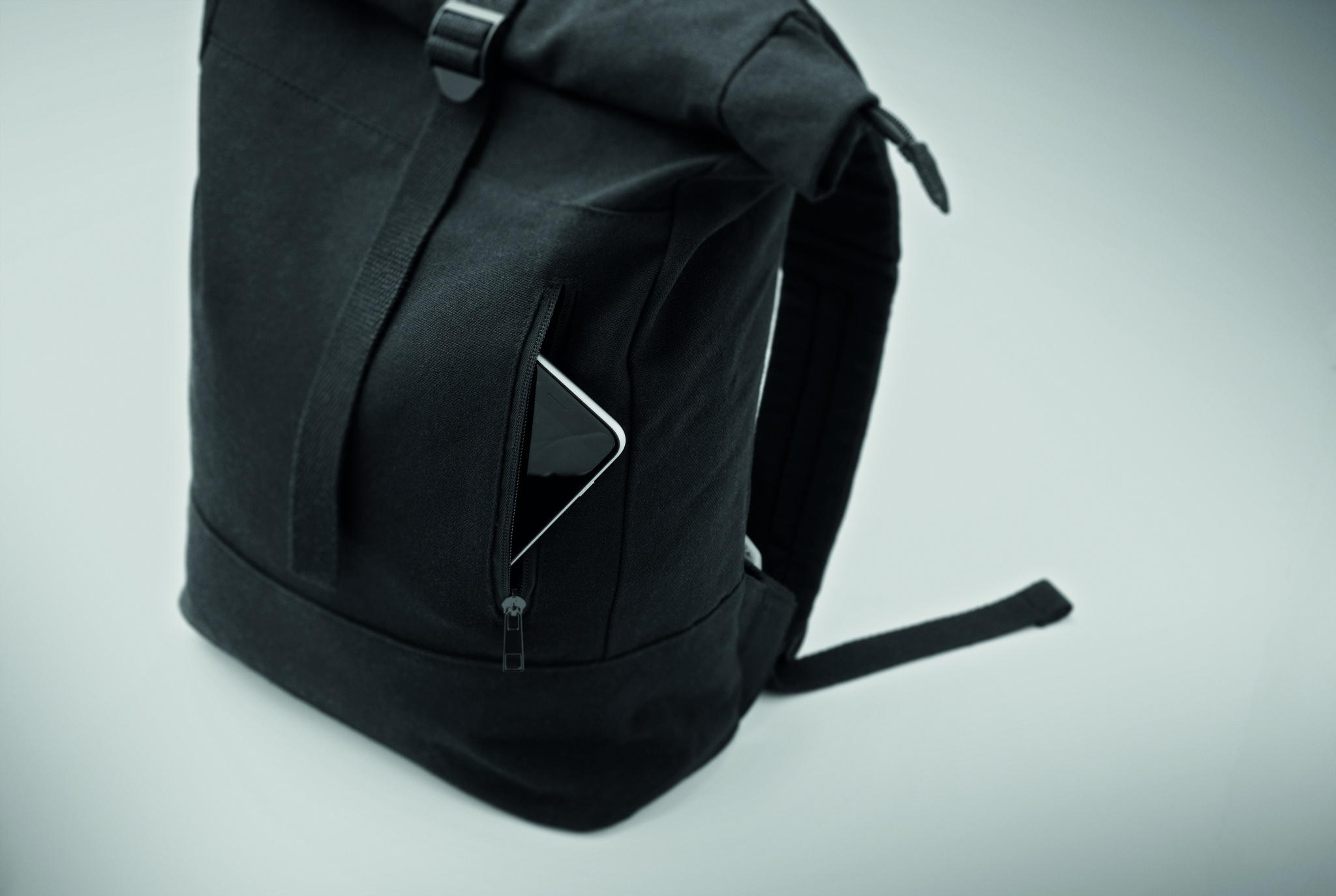 Рюкзак для 15-дюймового ноутбука с ролл-топ застежкой на молнии из переработанного хлопка и переработанного полиэстера (70%/30%). Передний карман на молнии. Спинка и плечевые ремни с мягкой подкладкой. 340 гр/м².