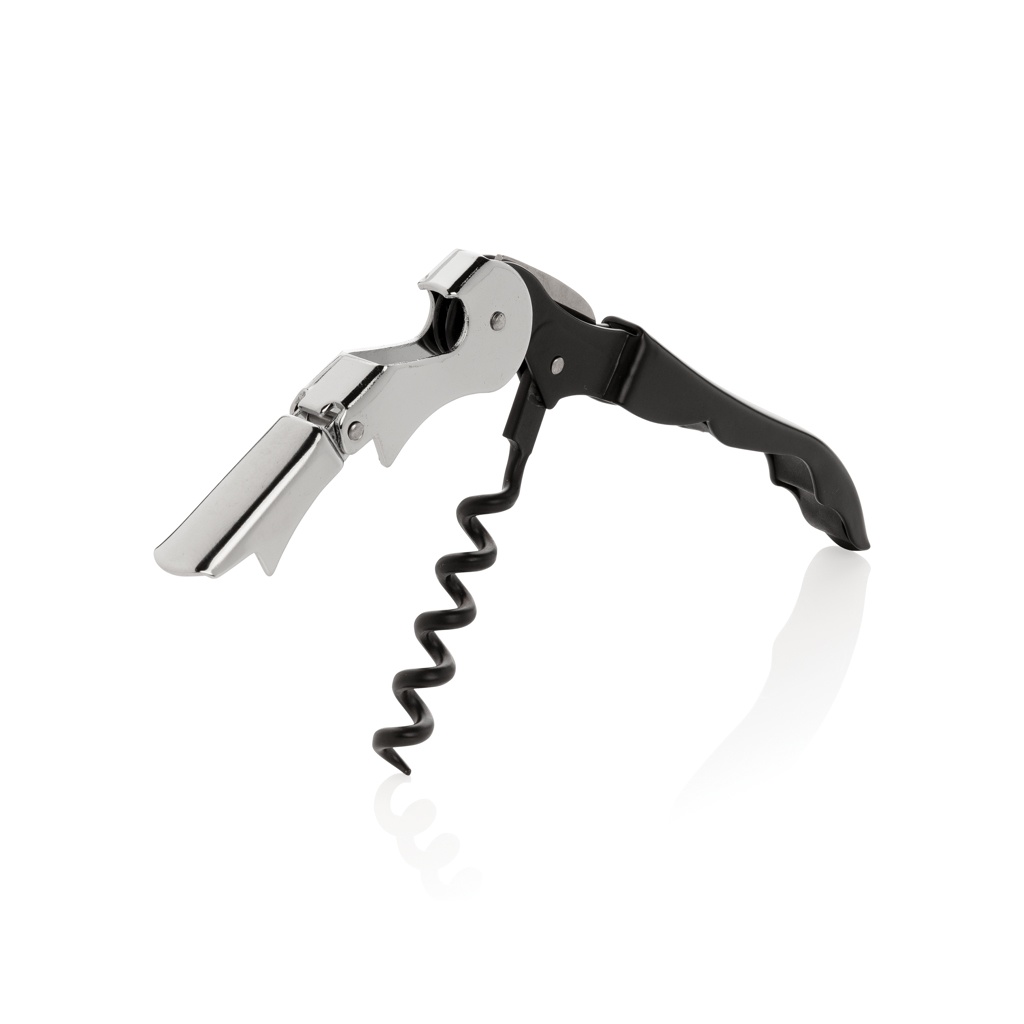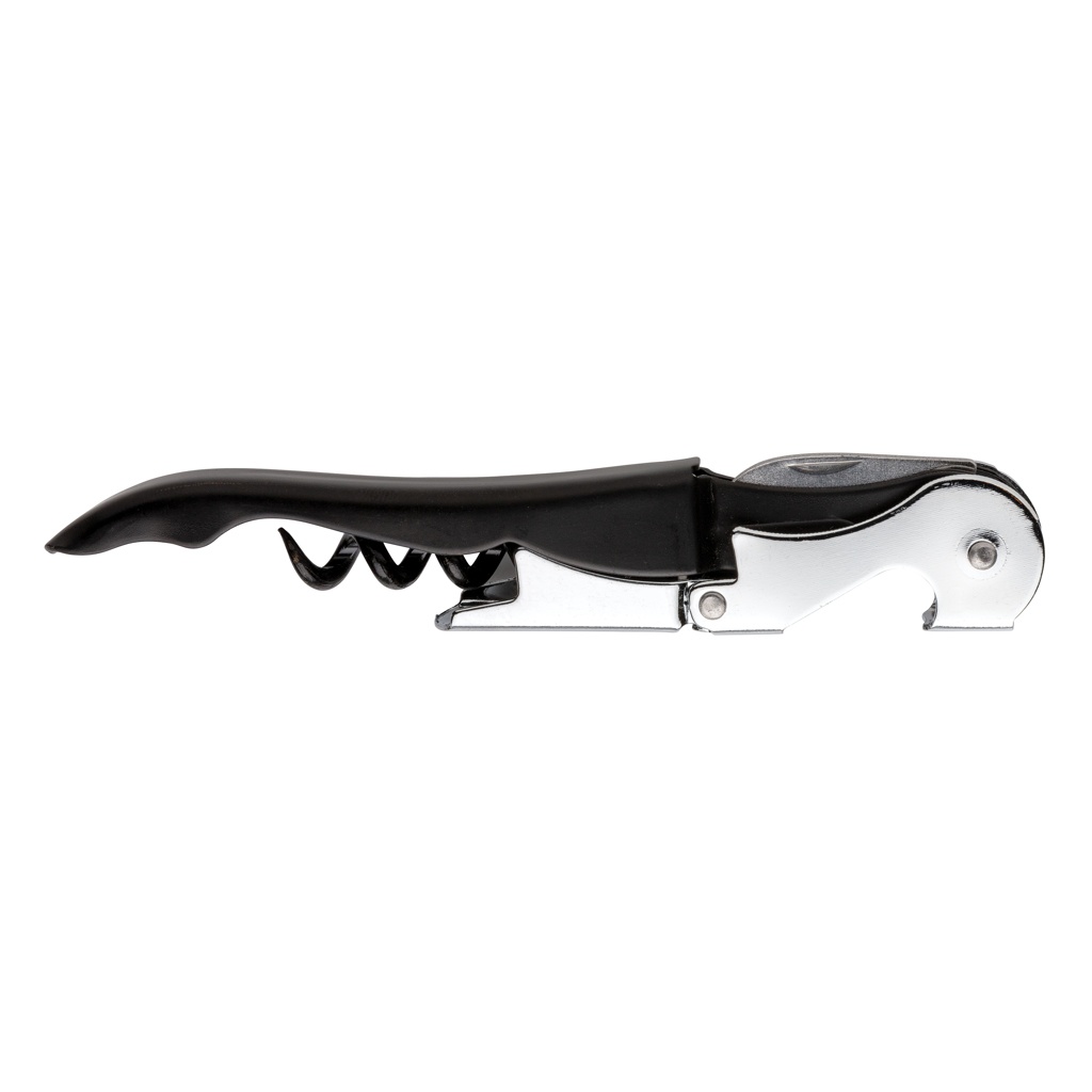 Этот штопор официанта представляет собой классический дизайн штопора, который имеет лезвие для резки фольги, двухступенчатый подъемник пробки и открывалку для бутылок. Упакован в подарочную коробку.