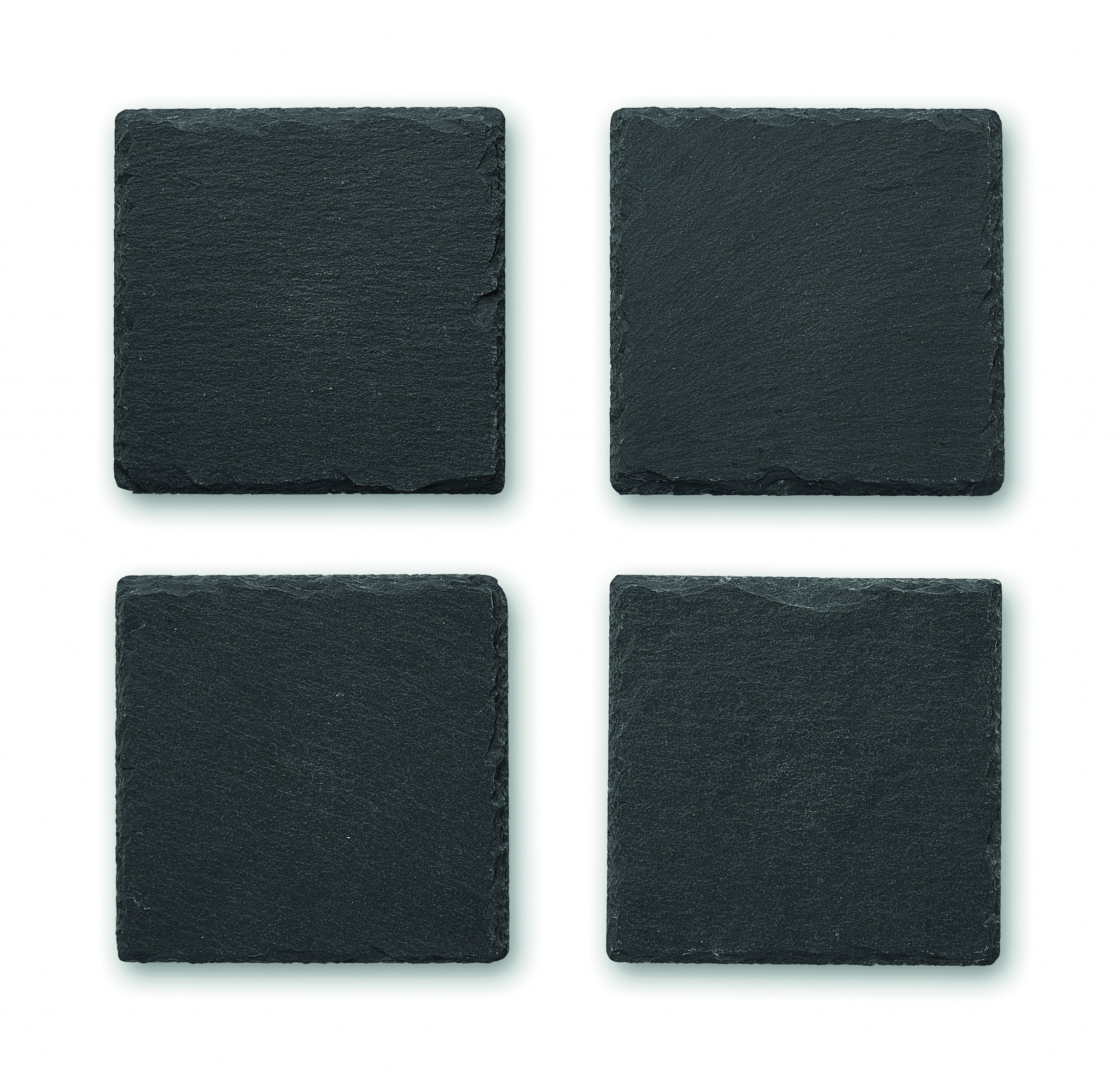 Набор из 4 костеров, выполненных из сланца. Дно из вспененного материала, что предотвращает скольжение.