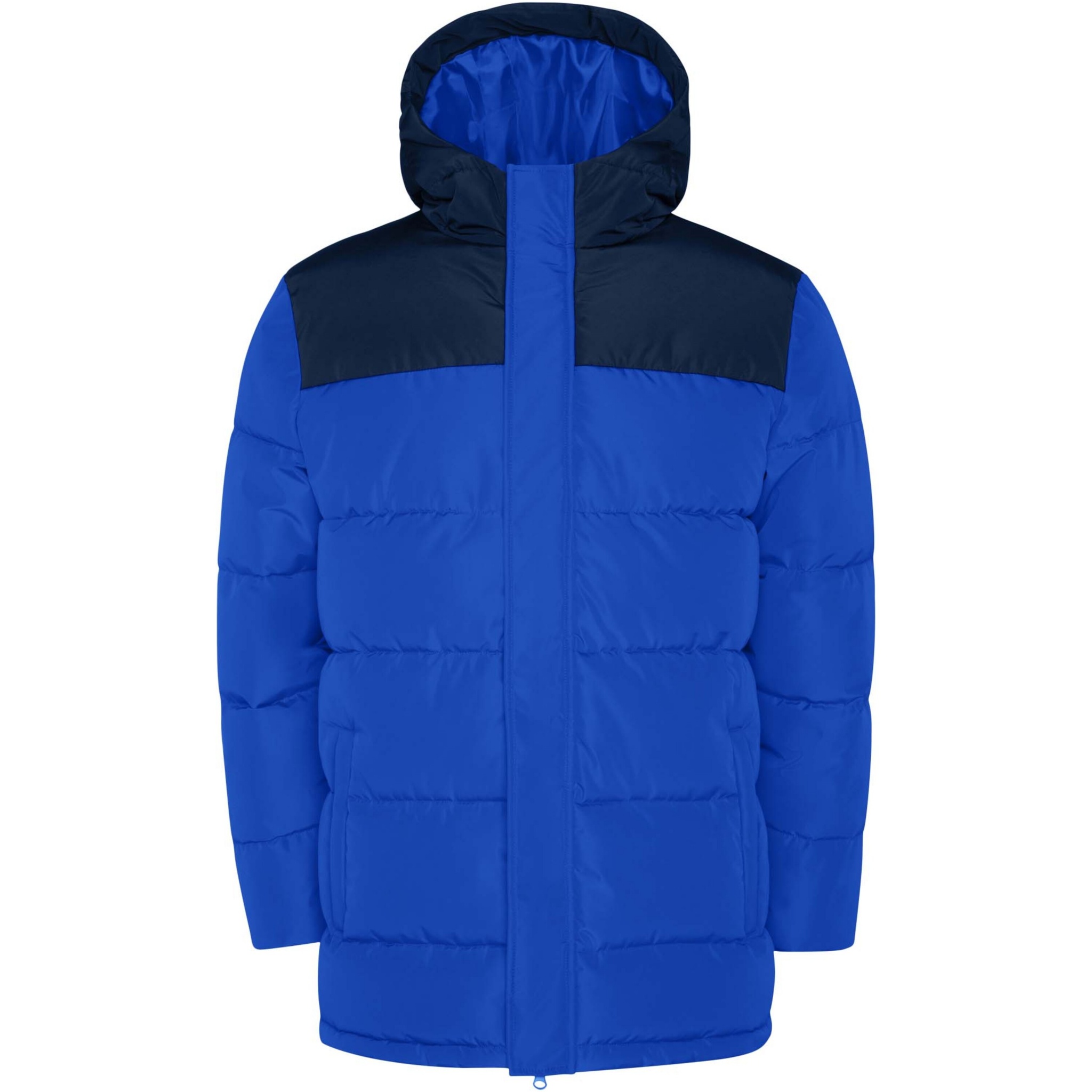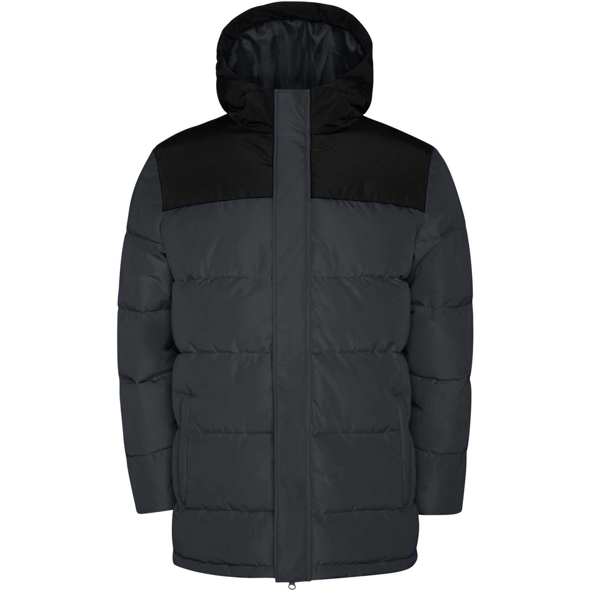 Утепленная куртка с фиксированным капюшоном. Передняя молния прикрыта планкой. Защита подбородка. Два боковых кармана на молнии. Эластичные манжеты.