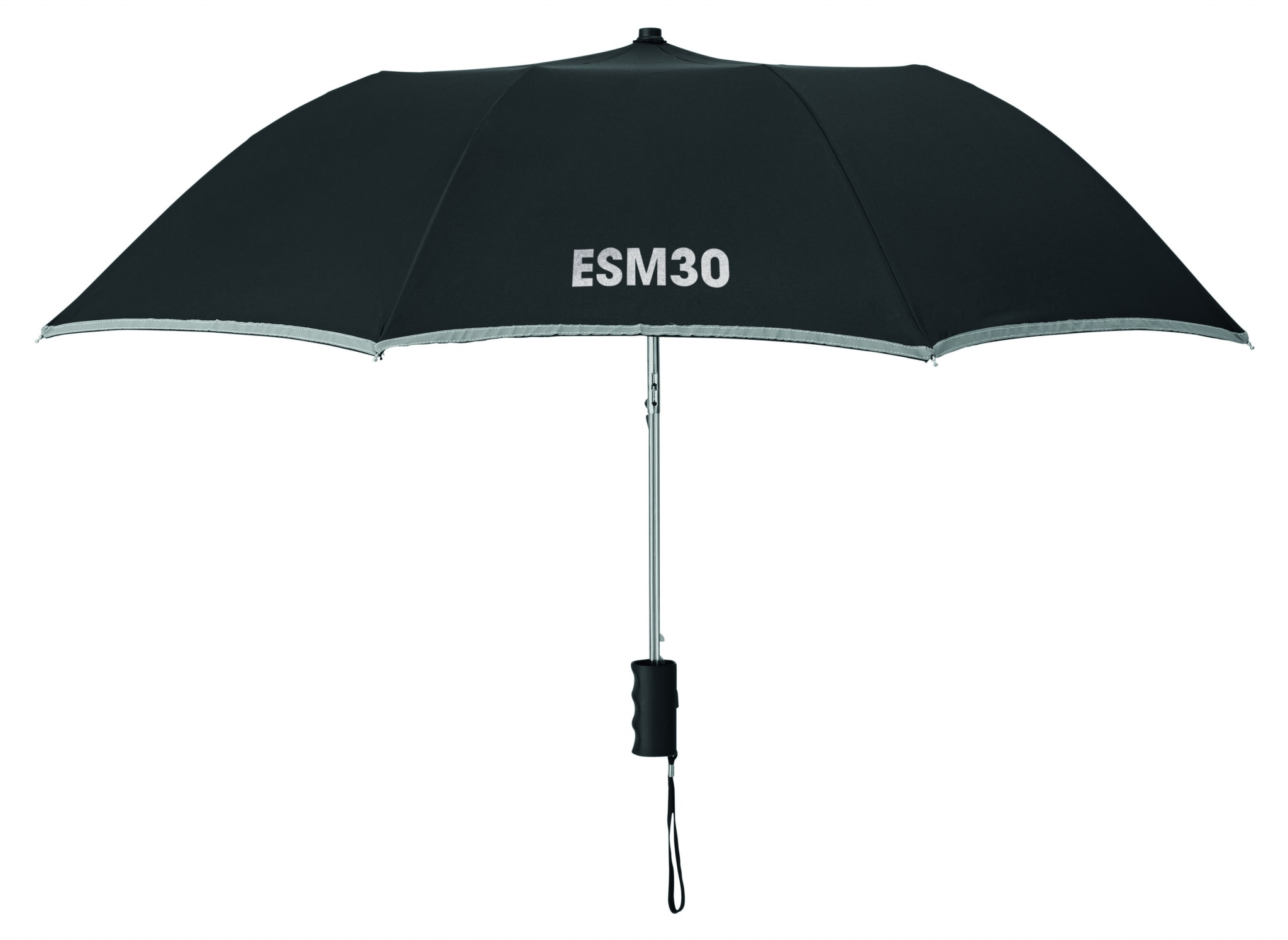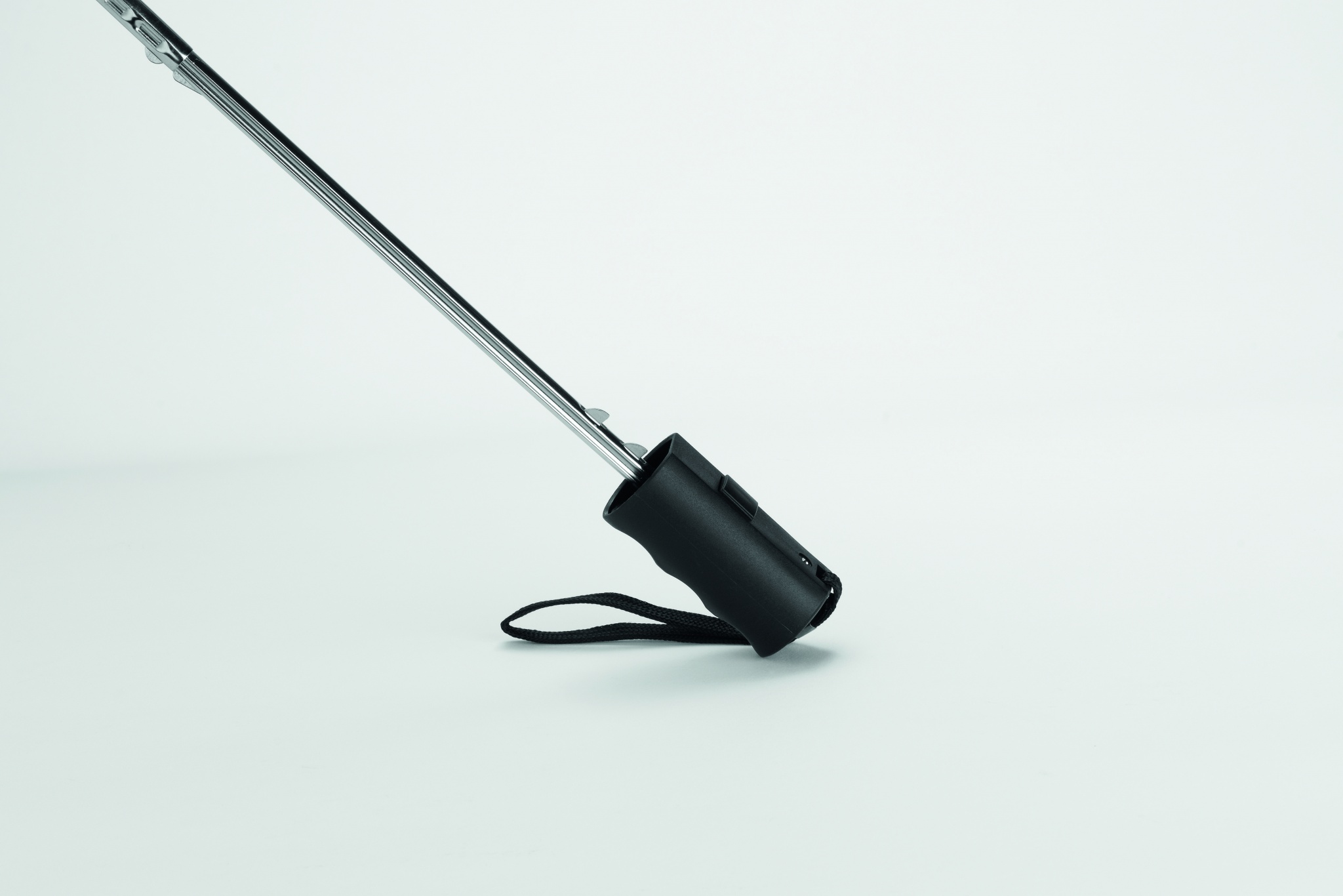 Sektionsparaply, 21 tums som smidigt passar i handväskan. Exklusiv Pongeenylon, automatisk öppning och ergonomiskt plasthandtag med handledsrem. Reflekterande band runt hela paraplyet. Färgmatchat fodral.