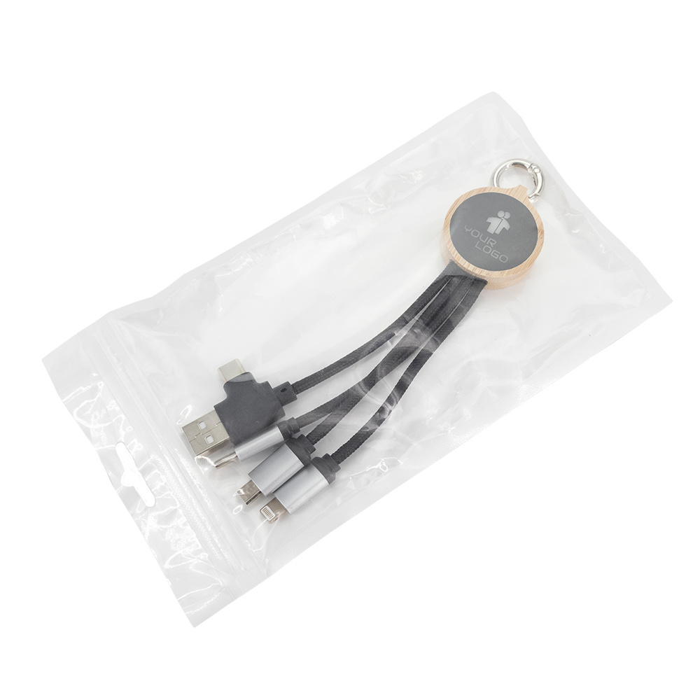 Logotrade profilreklam bild: 4-i-1-kabel med upplyst logotyp i trähölje, LH-ZMU05