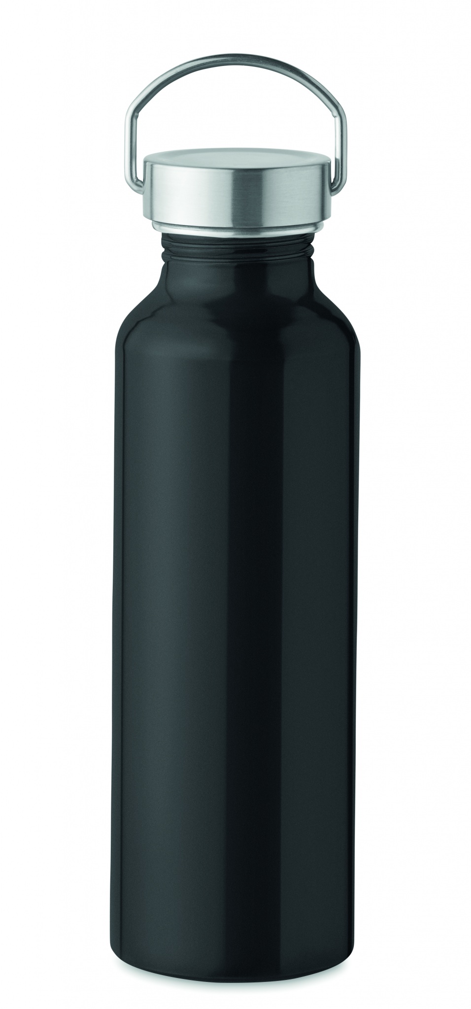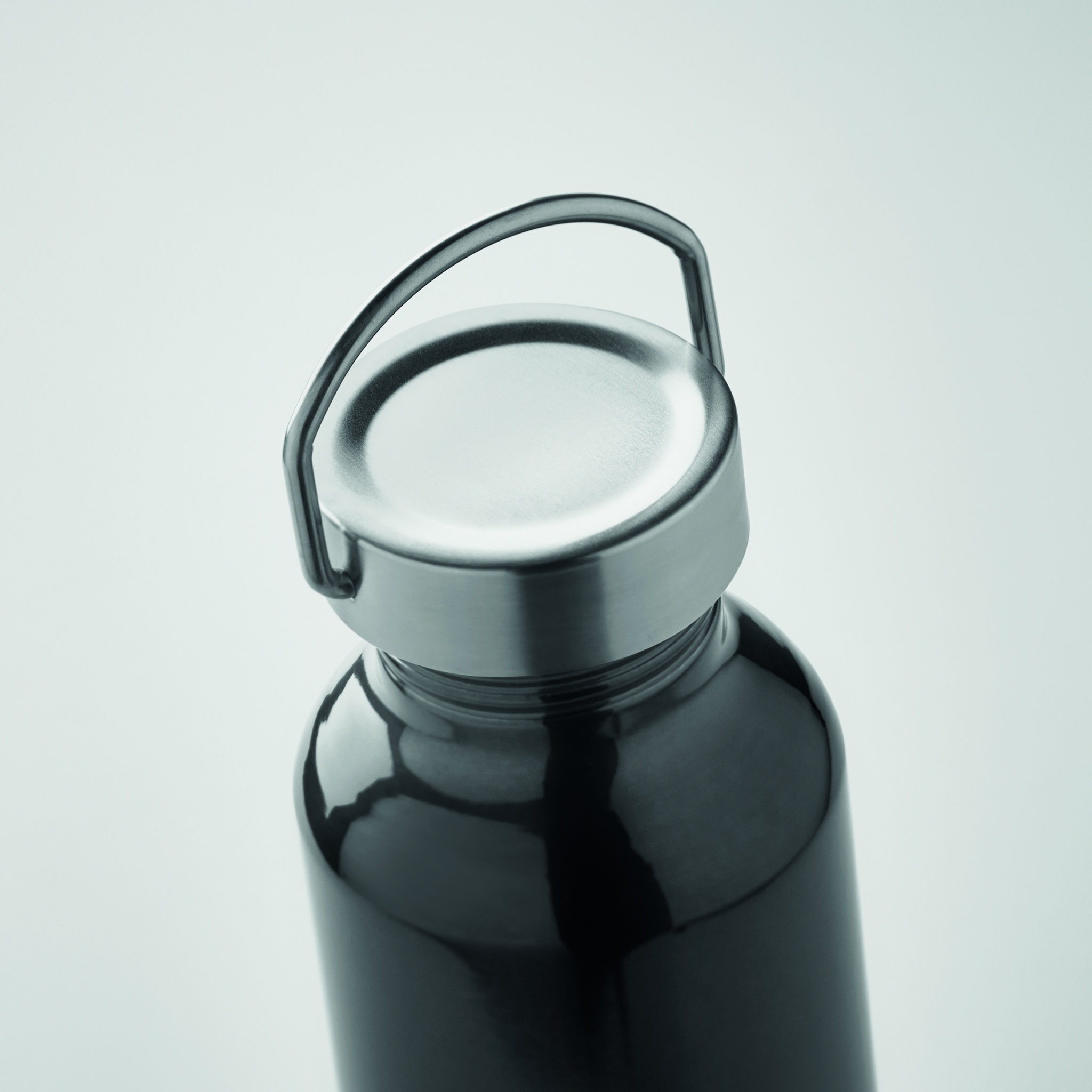 500 ml flaska av återvunnet aluminium med ett lock i rostfritt stål med handtag, Svart