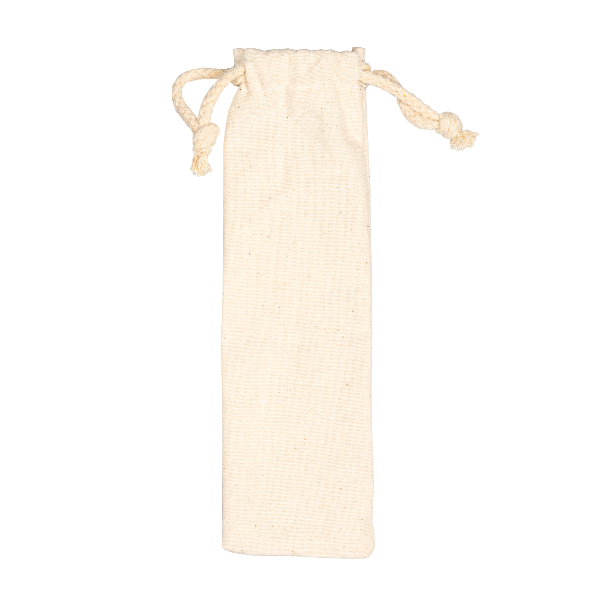 Miljövänliga bambubestick bestående av en gaffel, kniv och sked i en bomullspåse. Idealisk att bära och därför särskilt lämplig för camping eller andra utomhusaktiviteter. Logotypen är tryckt på påsen.