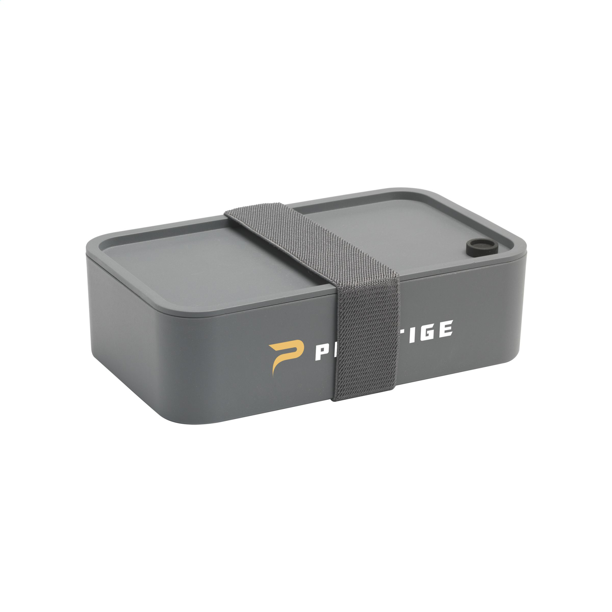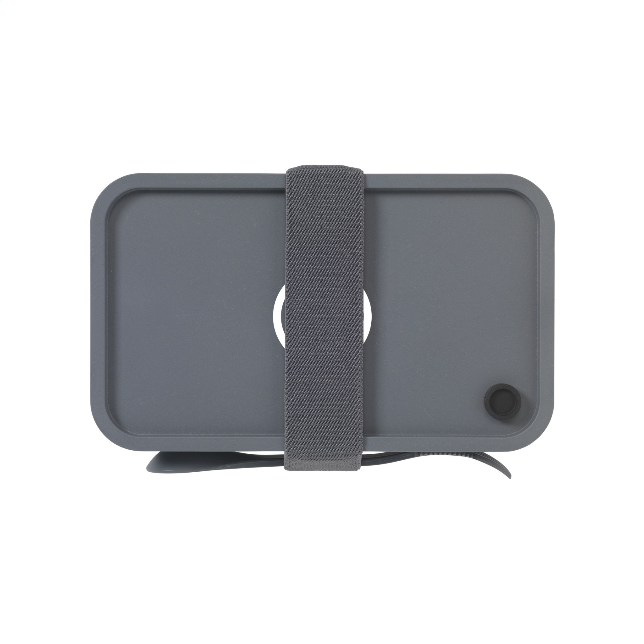 Matlåda av PP-plast. Det tättslutande locket har silikontätningsring med ventilationsöppning och silikonlock. En elastisk rem ser till att locket sitter på plats när du är på språng. Denna produkt innehåller en 3-i-1 gaffel, sked och kniv och en avtagbar avdelare. Denna matlåda kan läggas i kylen vilket gör den till den perfekta lufttäta behållaren för färsk mat. Hållbar och miljövänlig. Lämplig för användning i mikrovågsugn och frys.