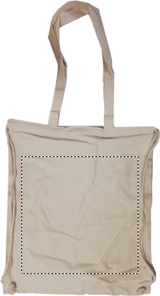 Kombinerad kasse och gymnastikpåse i bomullscanvas med långa handtag och dragsko somkan bäras som ryggsäck. Kvalité: 220 g/m2.
