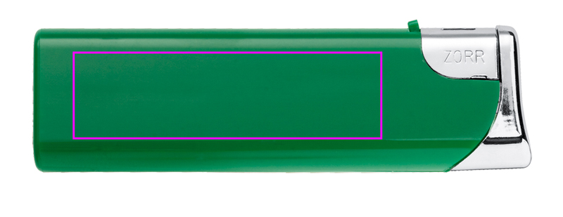 Påfyllningsbar elektronisk tändare av plast. Naturligtvis har denna modell det obligatoriska barnsäkerhetslåset. Vi trycker din logotyp på ena sidan av tändaren.