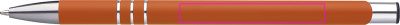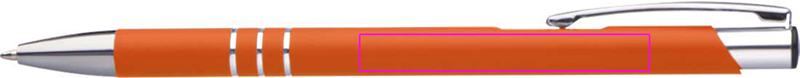 Smal metallkulpenna med gummifinish och blå skrivplastpåfyllning. Din logotyp kommer att graveras under klämman.