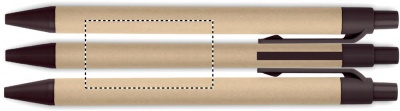 Penna med pappers kropp och övriga delar gjorda av kaffeböna 40% och 60% ABS. Blått bläck