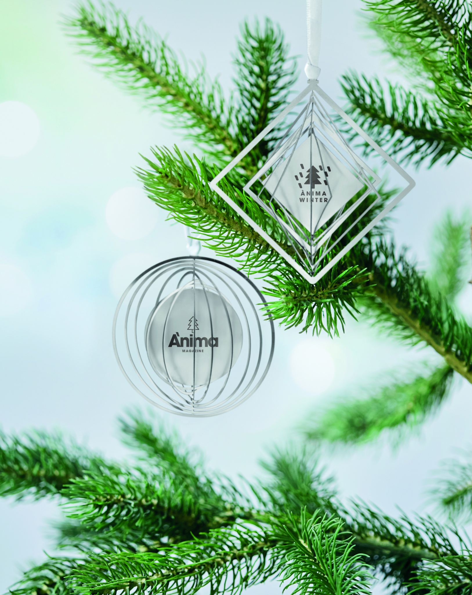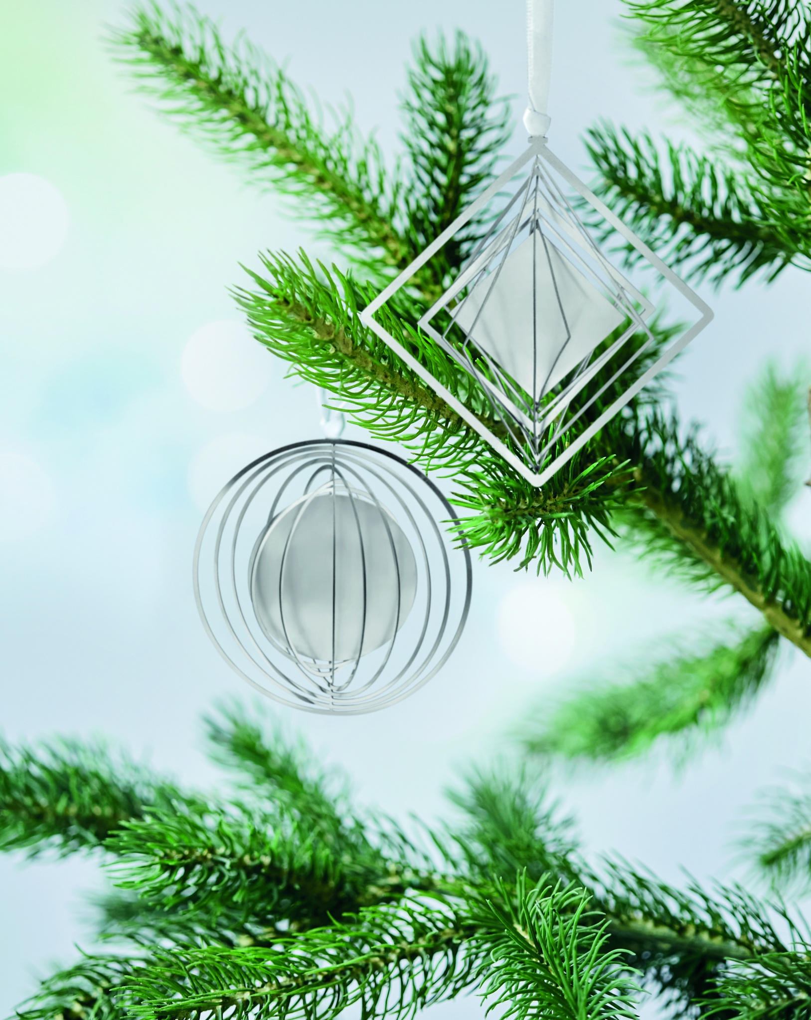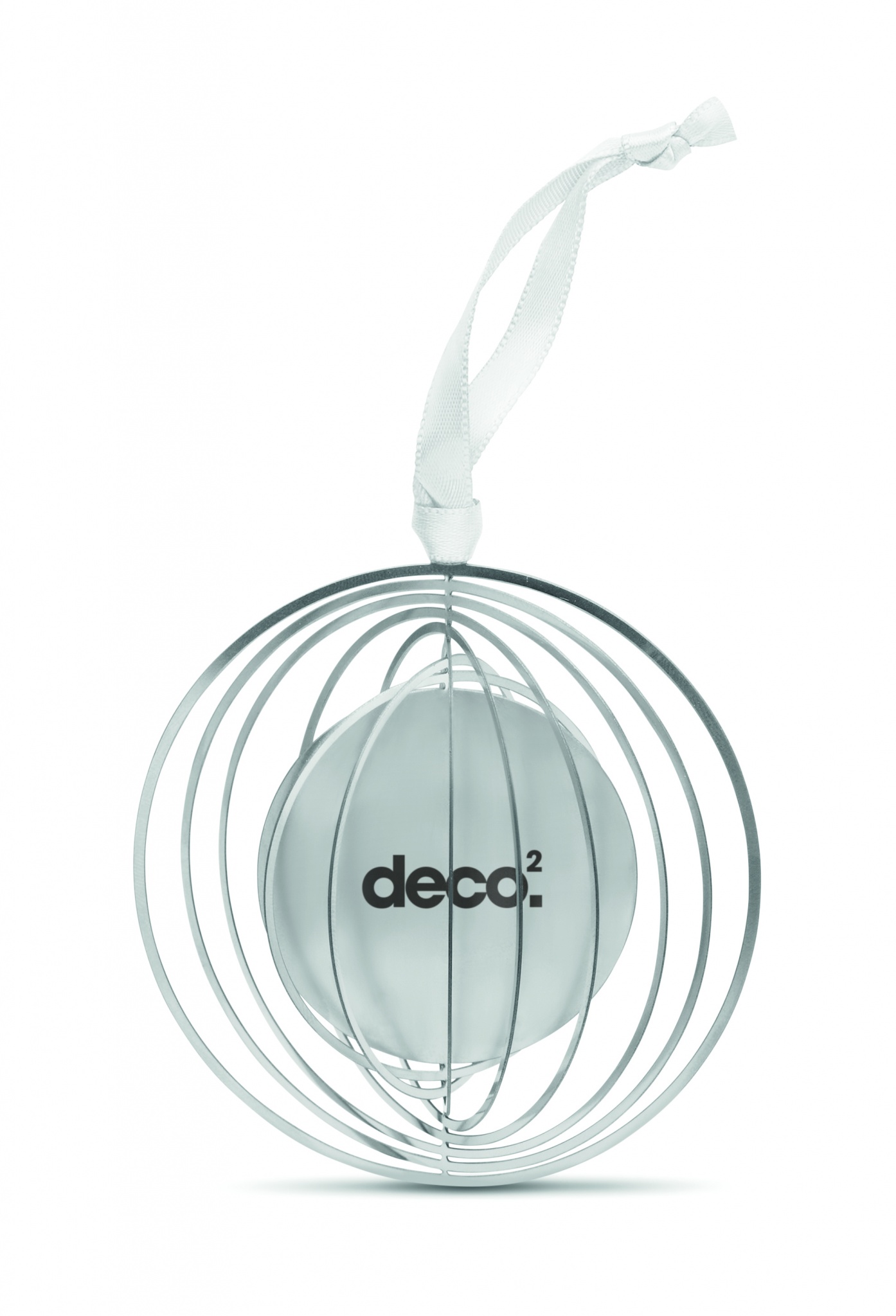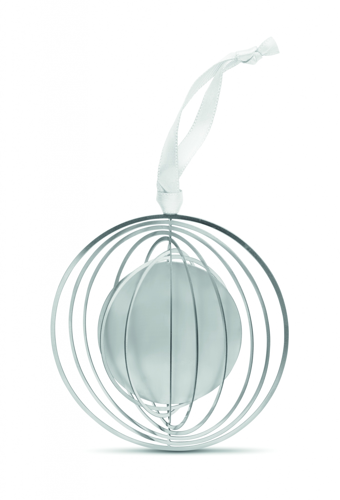 Rund dekorativ julprydnad i rostfritt stål med band i presentkuvert. Levereras platt för att enkelt skickas i brev och fälls sedan upp till en boll.
