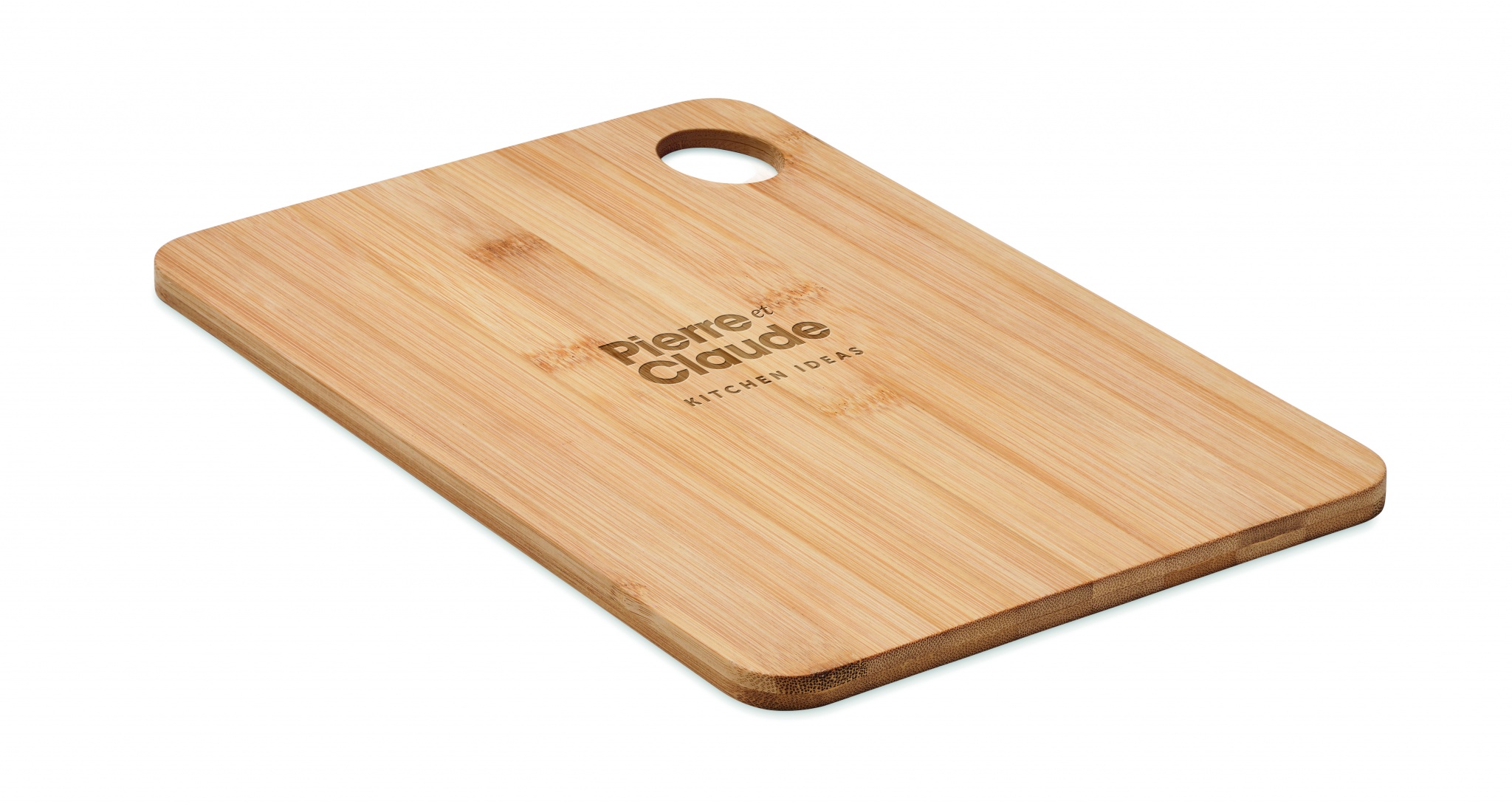 Stor skärbräda i bambusträ med hängande hål.