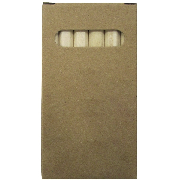 6 korta kritor i en kartong. Vi trycker din logotyp ovanpå kartongen i önskad färg.