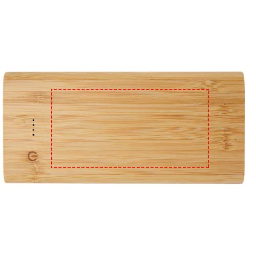 Powerbank på 10 000 mAh tillverkad av bambu, med en på/av-pekknapp och fyra LED-indikatorer för att visa återstående batterikapacitet. Mikro-USB-ingång 5 V/2 A, Type-C-ingång 5 V/3 A, Type-C-utgång 5 V/3,1 A max, dubbel USB-A-utgång 5 V/3,1 A max, total effekt 15,5 W. Levereras med en 30 cm TPE 3 A Type-C till Type-C-laddningssladd, en bruksanvisning och en presentförpackning i kraftpapper. Eftersom bambu är en naturprodukt kan det finnas små variationer i färg och storlek per objekt, vilket kan påverka det slutliga tryckresultatet.
