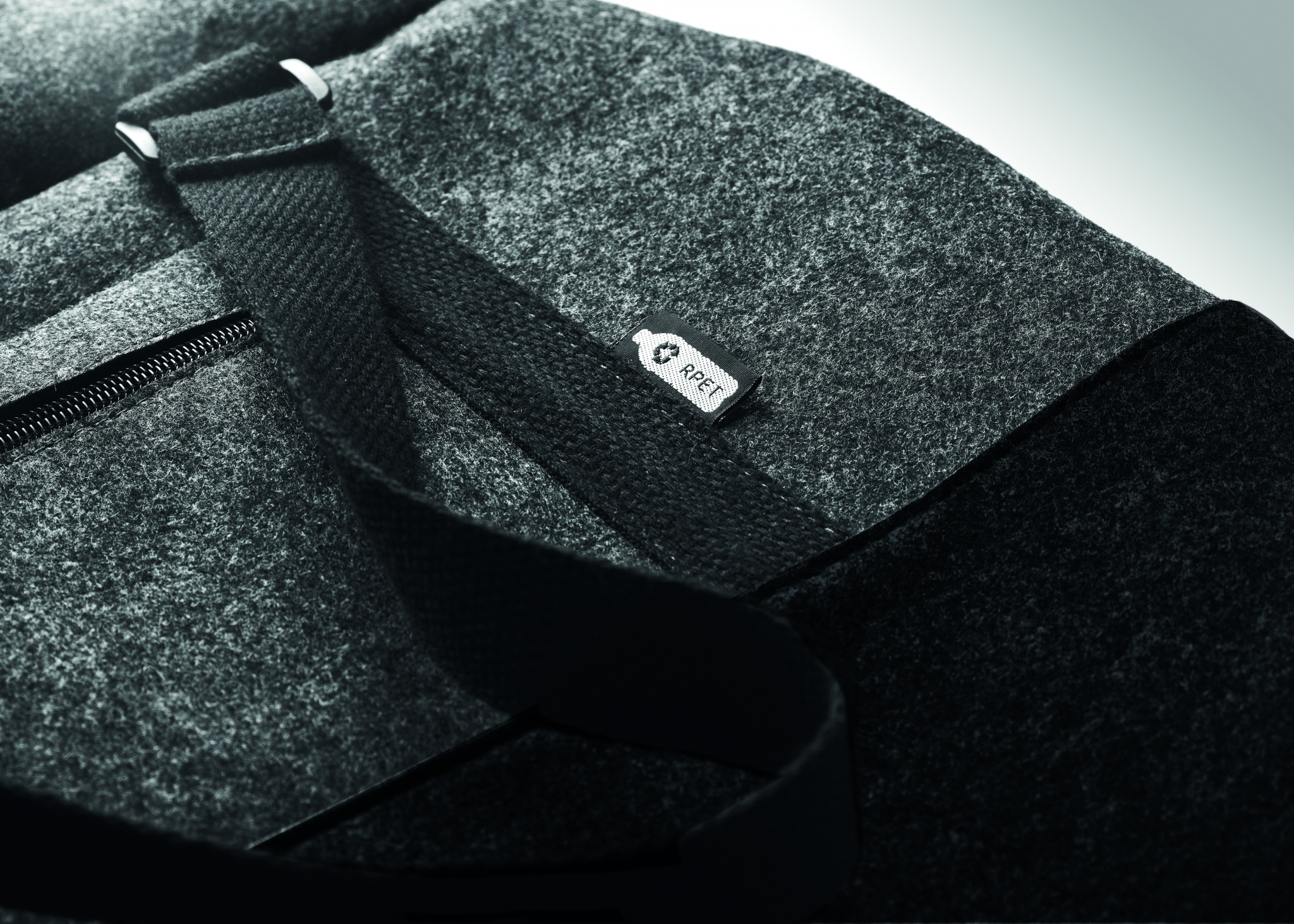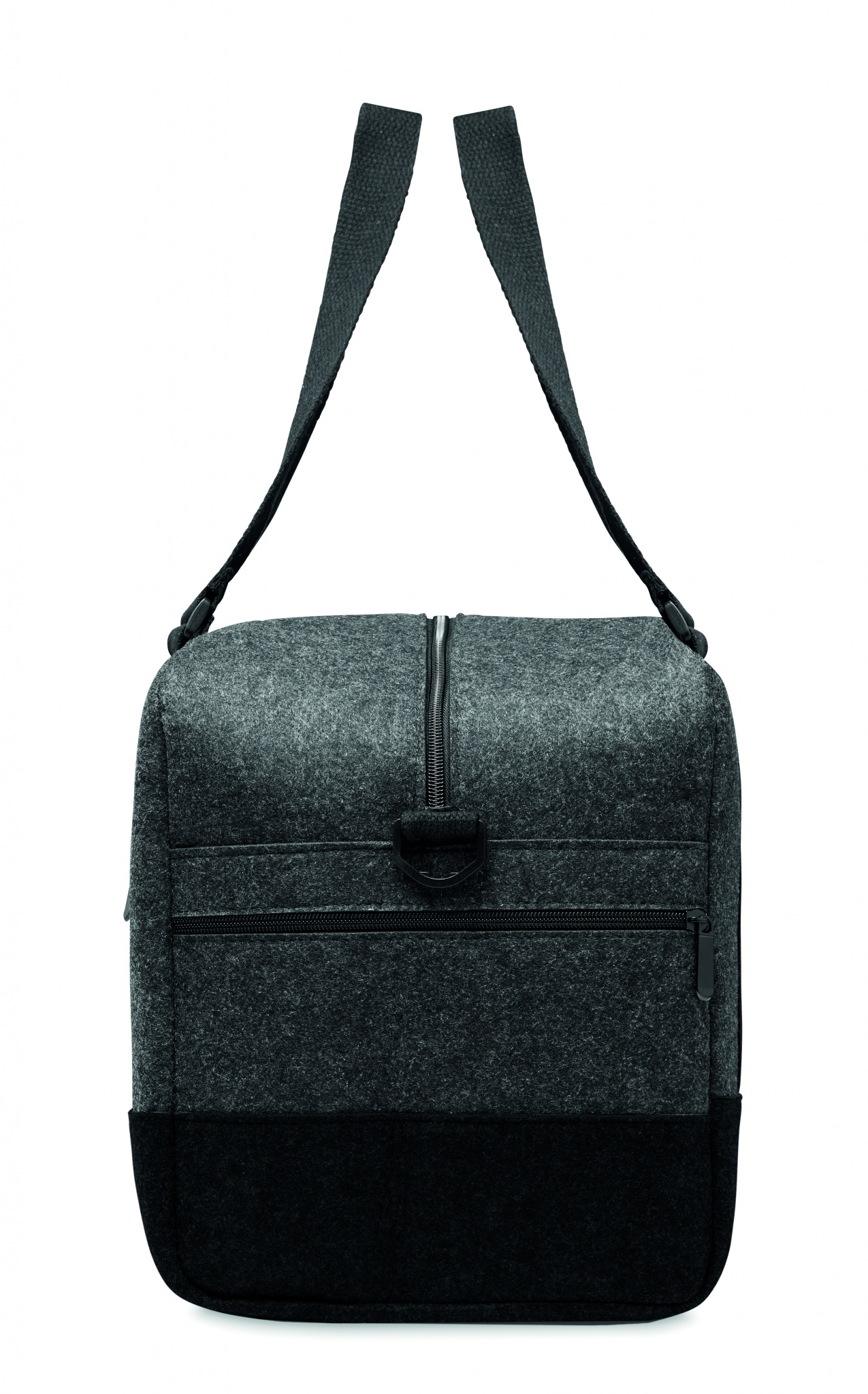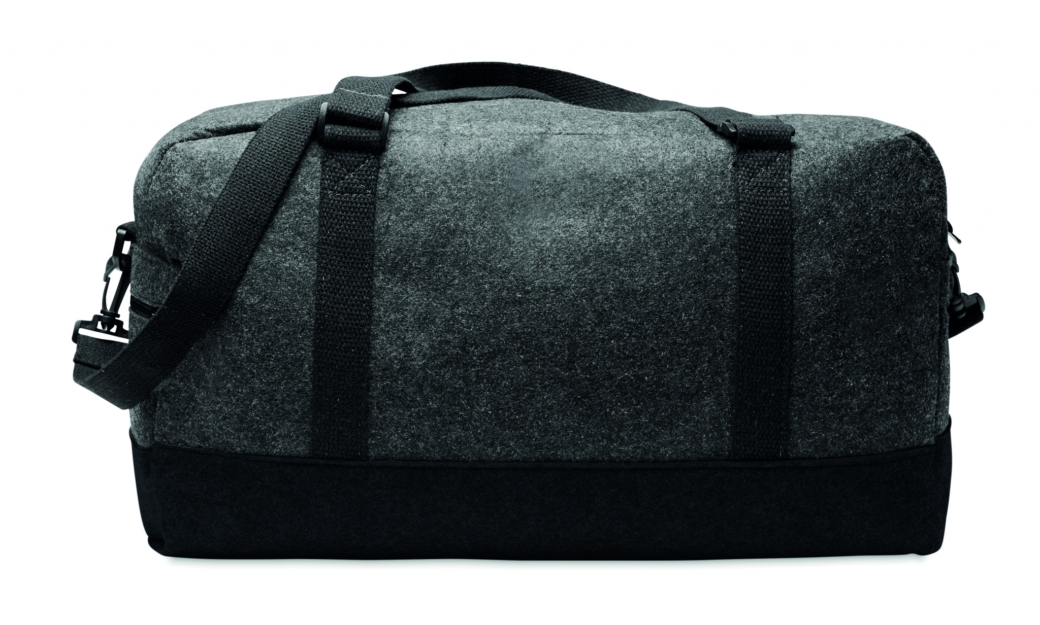 Weekend- eller träningsväska i RPET-filtväska för med dragkedja på framsidan, handtag av canvas och avtagbar justerbar axelrem.